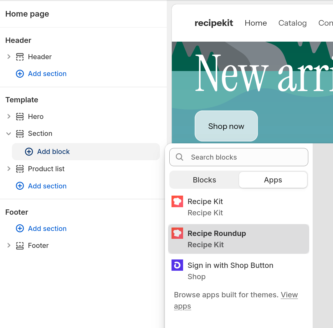 The Recipe Roundup feature lets you display a curated list of recipes on any page of your store. Use it to create "best of" lists, seasonal collections, or featured recipe sections on your home page, blog posts, or custom pages.