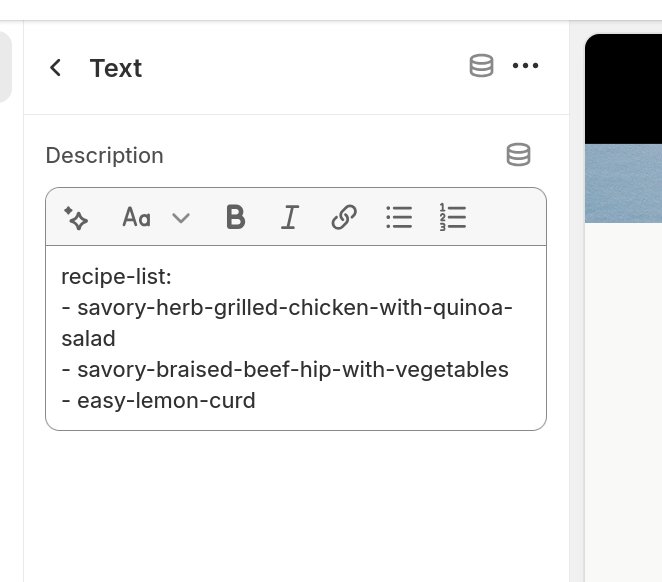 recipe-list: - my-first-recipe-handle - my-second-recipe-handle - another-recipe-handle